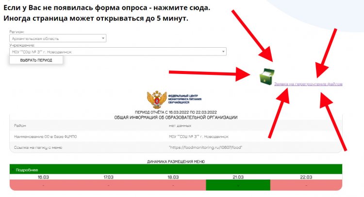 В этом случае нужно обратиться или в чат мониторинга по ссылкам выше или обратиться к ответственному за питание по региону. Если Вы используете нашу платформу foodfile.ru или находитесь на обслуживании готового сайта для школы и детского сада - напишите нам, мы поможем.